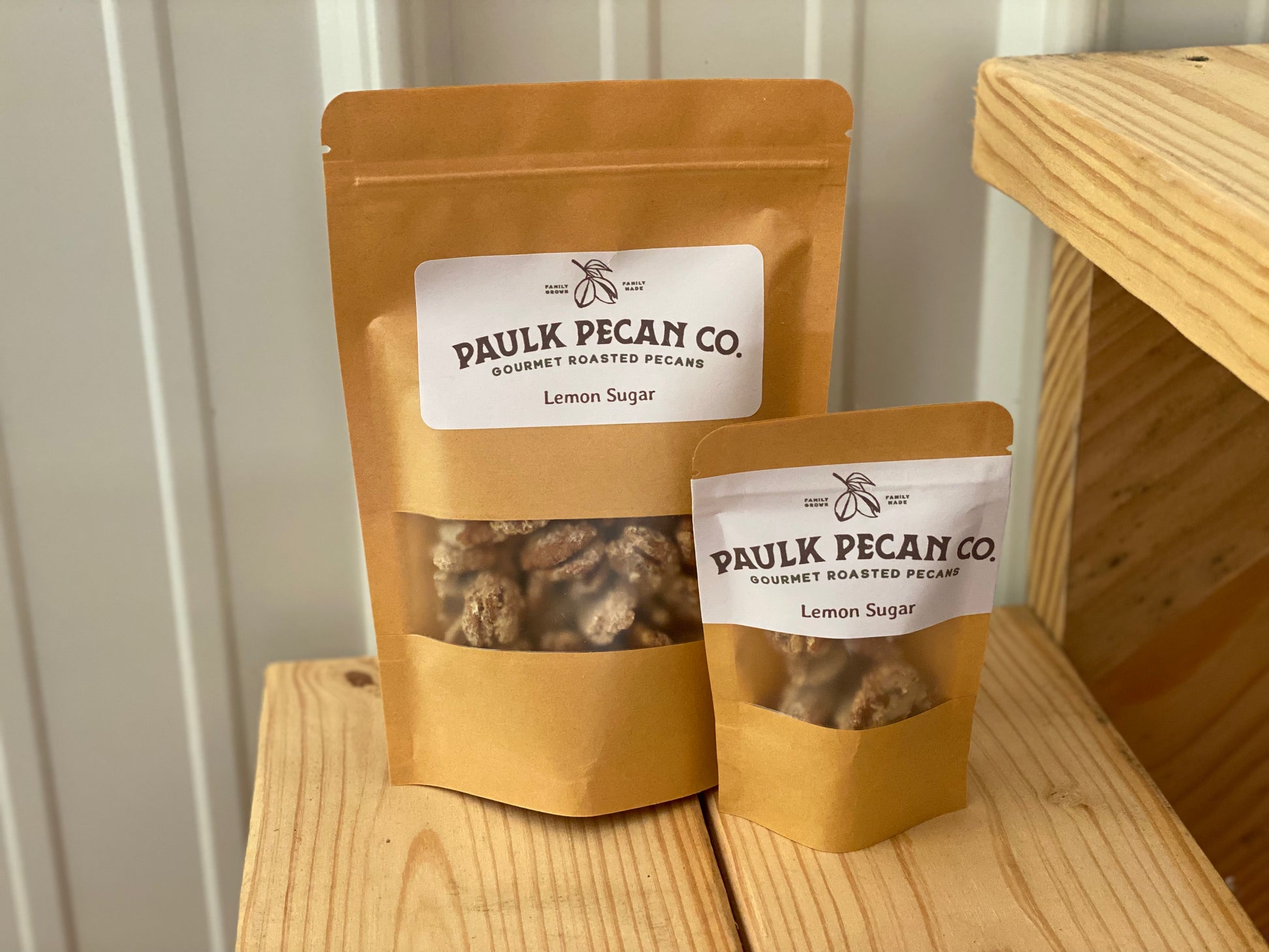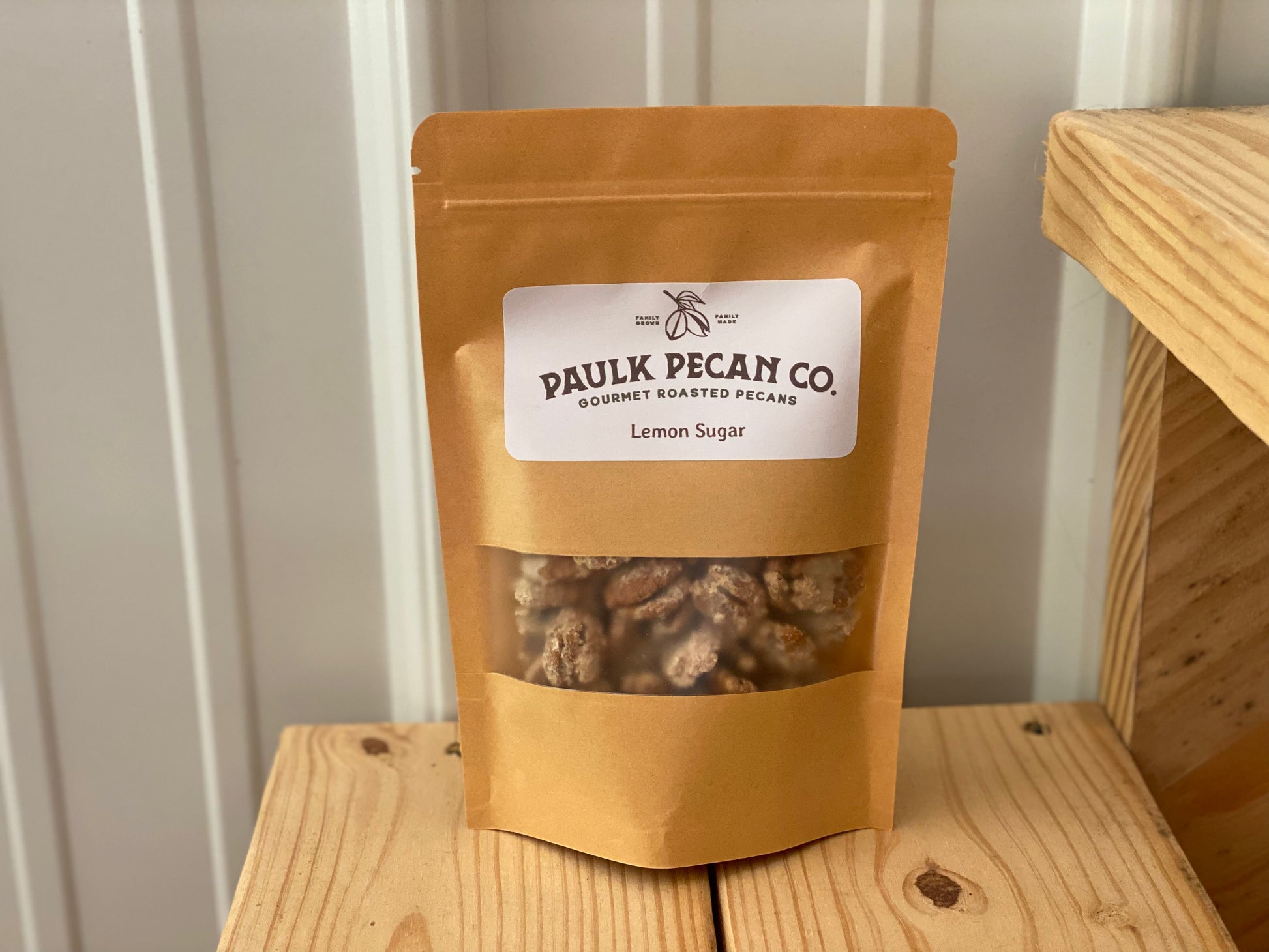 These are roasted pecans with our lemon sugar coating. Our Lemon Sugar Pecans have a sweet sugary coating with a refreshing hint of lemon!
