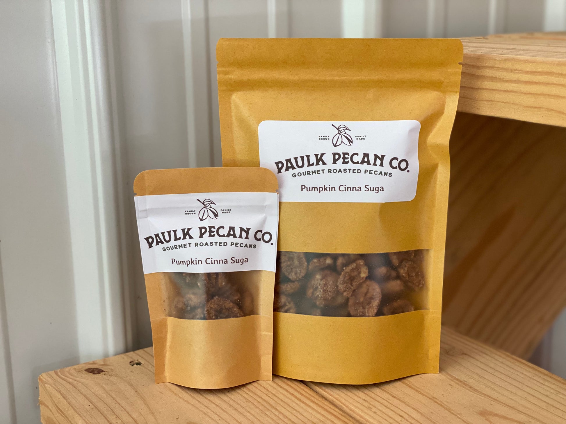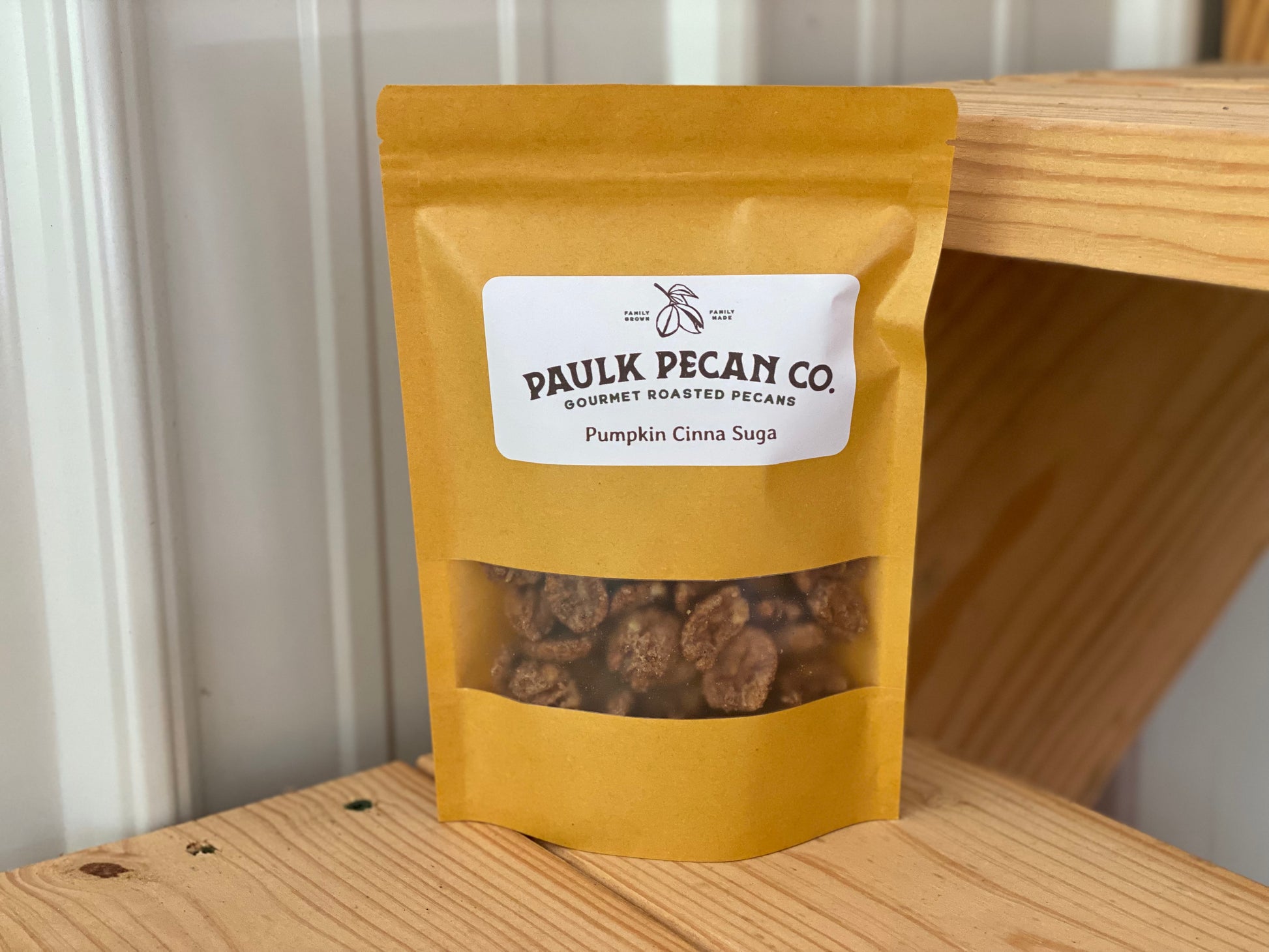 These are our classic Cinna Suga Pecans with a pumpkin twist! Our Pumpkin Cinna Suga Pecans are roasted pecans with our cinnamon sugar mix and a hint of vanilla and pumpkin! These taste like fall!